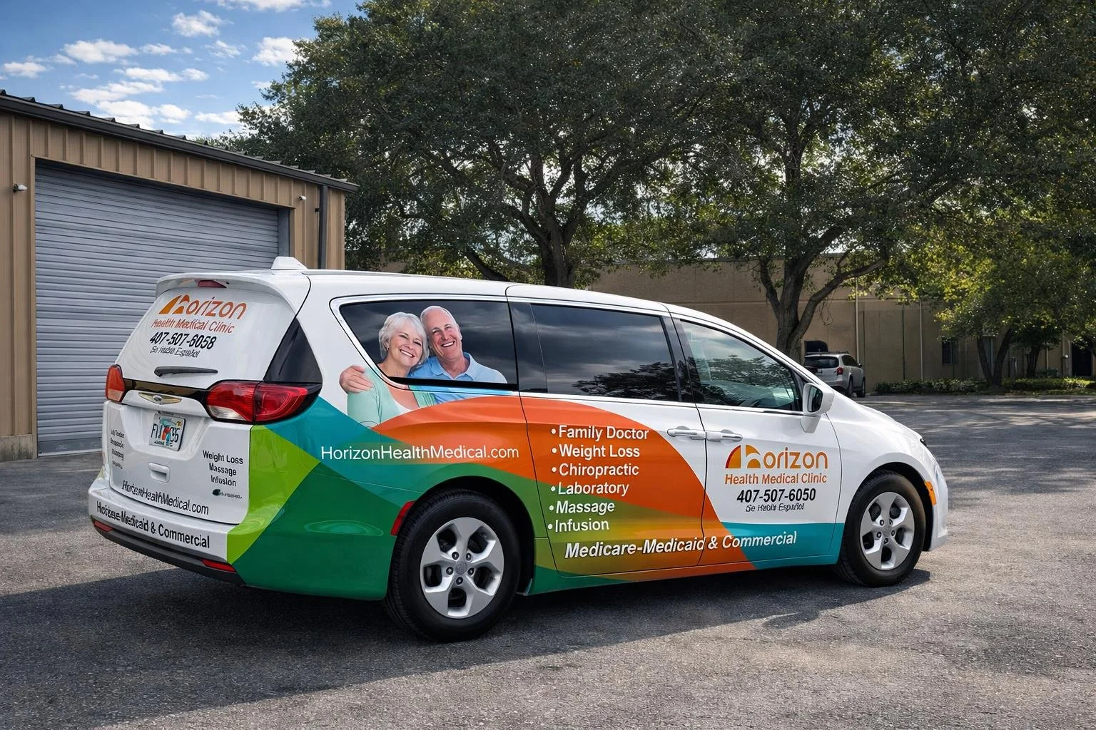 Turn your company vehicles into mobile billboards with professional commercial wraps from Fusion Wraps in Orlando. Whether you're wrapping a single van or an entire fleet, we design and install custom graphics that boost brand visibility, build trust, and drive results — mile after mile.